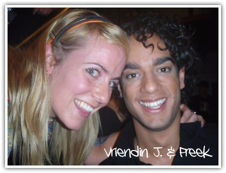 Voor mijn vriendin J. heb ik echter veel over. Dus terwijl zij over de trap hing om met haar hoofd zo dicht mogelijk bij Freek te zijn, vroeg ik hem (platgedrukt tussen de menigte) netjes of ie even met haar kon poseren, zodat haar avond niet meer stuk kon. En cute/lief/leuk/sweet als ie is, deed Freek dat natuurlijk meteen, breed glimlachend. Met een rood hoofd van opwinding liepen we daarna naar de uitgang. Haar avond (lees: leven) kon inderdaad niet meer stuk!