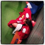 Nadat ik vriendje zaterdagochtend had aangemoedigd (8), was het ’s middags mijn beurt. Ik was helemaal klaar voor de wedstrijd tegen mijn vriendinnetje Jantien, die bij VTC Woerden D1 speelt (9). HelaasĂ© ging ik eind derde set door mijn enkel; ik kwam na een blokkering neer op de voet van mijn tegenstandster. Ik kon niet verder (10), maar gelukkig maakten mijn teamies het goed af: 3-1 winst!