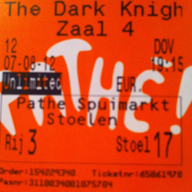 Dinsdag was het dan ein-de-lijk zover: na een heel slecht maar super lekker diner (1) ging ik The Dark Knight Rises bekijken! (2) En wel met vriendinnetje Sanne, die net zo’n Christian Bale-fan is als ik. Zij had ‘m al gezien, maar wilde met alle liefde nog een keer met mij. En terecht, want wat is dat een BRILJANTE film! Een meer dan waardig einde van een fantastische trilogie… Ik wil ook heel snel nog een keer!