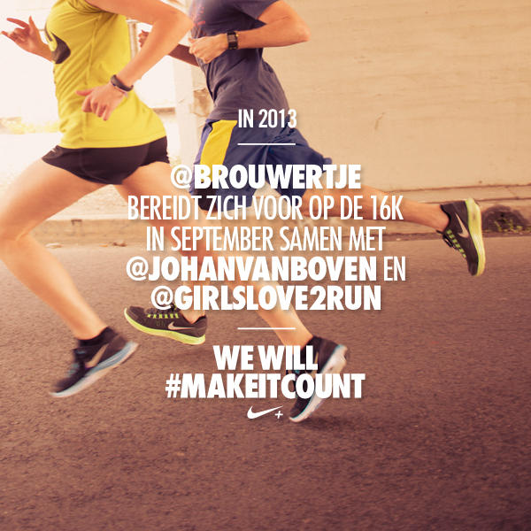 Ikke doe mee! :-) Ik ben bij les 7 van Start2Run/Evy, en zou in maart 5km. kunnen lopen. Die Nike-app zegt mij persoonlijk ook (nog) weinig, zet ‘m gewoon aan en loop op de instructies van Evy. Zet ‘m op meis!