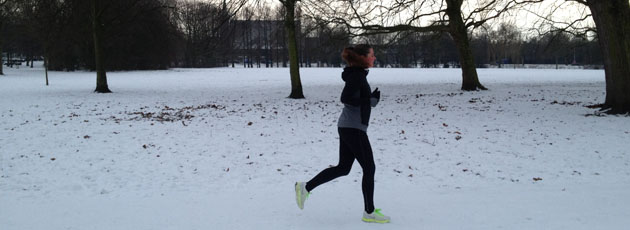 Mijn hardloopschoenen staan werkeloos in de gang te wachten tot de sneeuw en gladheid verdwenen is.