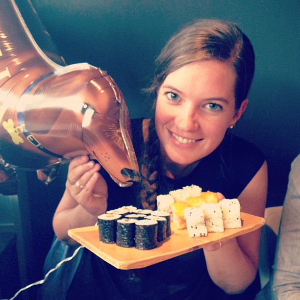 ’s Avonds ging ik met mijn lieve directe collega’s Debbie, Anne-Lieke, Richt en Miranda sushi eten in mijn mooie stadje Rotterdam. Normaal doen we dat soort dingen altijd in Amsterdam en ben ik degene die ellenlange treinreizen maakt, deze keer waren zij dat. ;) De Grazia-hond volgde uiteraard trouw: in het restaurant, in de tram tot aan mijn huis. Ik had een hoop bekijks met het ding! Het was fijn om nog even met deze meisjes te kletsen en lachen. Afscheid nemen bestaat gelukkig niet in de kleine online media-wereld; we gaan elkaar ongetwijfeld snel weer tegenkomen.
