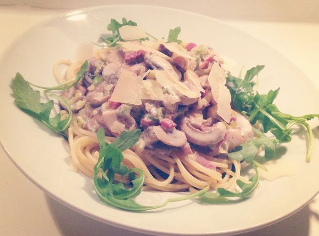 ’s Avonds moest ik natuurlijk een goede stevige maaltijd eten. Koolhydraten! Ik maakte de overheerlijke pasta carbonara a la Pien. Ook maken? Het recept vind je op depanvanpien.nl.