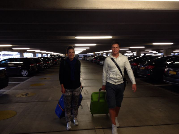 Om half 11 ’s ochtends arriveerden we na een helse vlucht met héél veel jengelende kinderen zo brak als een garnaal op Schiphol. Gelukkig hoefden we niet met de Fyra naar huis, want schoonzus Marieke was zo lief om ons op te halen en thuis af te zetten. Brrr, wat vonden we het koud! Wat een overgang. :(