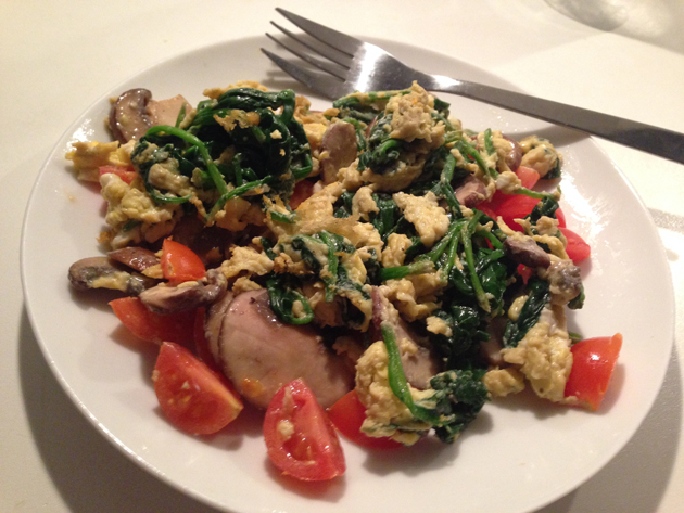 Op Curacao hebben we natuurlijk alles gegeten en gedronken wat we lekker vonden, dus doen we hier in Nederland weer gezond. Zaterdag sliepen we lekker uit en maakte ik als lunch een scrambled ei voor mezelf met spinazie, kastagnechampignons en cherrytomaatjes.