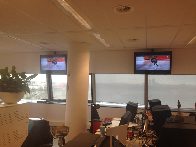 Op de redactie werd de indeling van de bureaus omgegooid, dus moest ik maandag even een dagje in onze grote vergaderkamer werken. Zo zat ik erbij!