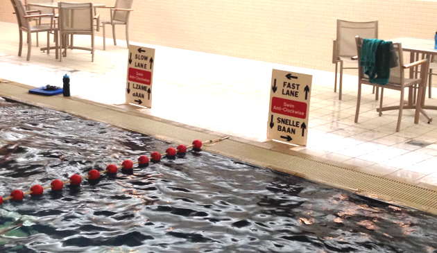 Wat heerlijk dat je sportschool een zwembad heeft, dat is wel erg fijn.