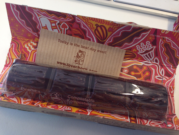 Vrijdag kocht ik op station Amsterdam CS deze gezonde chocolade bij de natuurwinkel. Had er al veel over gehoord en was nieuwsgierig geworden. Maarre, wat is dit VIES! Ik zal er wel aan moeten wennen, maarre… dat wil ik dus niet. Doe mij maar gewoon weer Tony’s de volgende keer. ;)