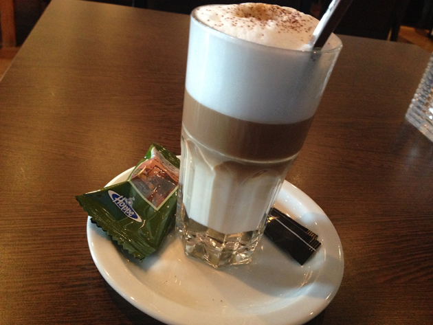 Daarna dus naar de film, maar we waren wat te vroeg. Een lekkere latte macchiato met witte chocolade-smaakje om op te warmen; wat is het soms nog koud buiten!