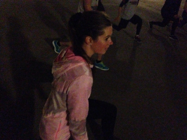 Eerst even een goeie warming-up natuurlijk. Zo leuk, door het Vondelpark rennen!