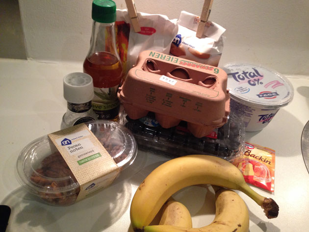 Zondagavond maakte ik weer eens bananenbrood, mmmmm… Kunnen we de komende week mooi als gezond tussendoortje meenemen naar ons werk.