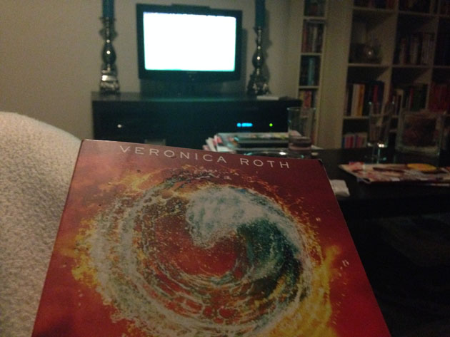 Donderdagavond: tijd om even rustig aan te doen. Terwijl Johan voetbal keek, kroop ik lekker tegen hem aan met mijn boek. Helaas, helaas, helaaaaaas heb ik de Divergent-trilogie nu uit. *snik*