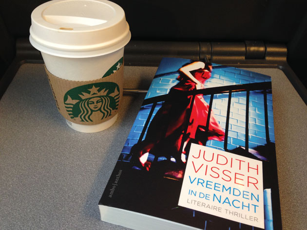 Volgende dag weer fris en fruitig in de trein met een nieuw boek. Ik heb Vreemden in de nacht van Judith Visser alweer uit, prima boek. Lekker spannend en leest heerlijk weg.
