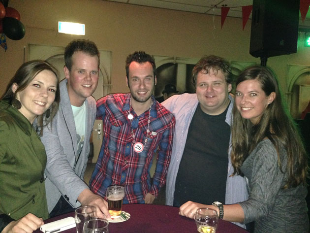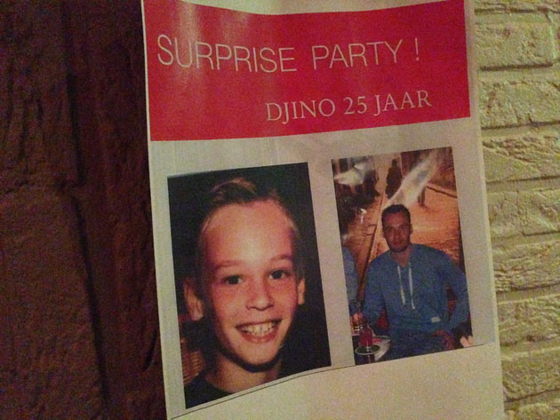 Vrijdagavond ging ik met mijn broertje Jesper, nichtje Sabine en neef Jodie naar de surpriseparty voor ons neefje Djino, die zijn vader voor hem had georganiseerd voor zijn 25e verjaardag. Hij had helemaal niks door, zo cool.