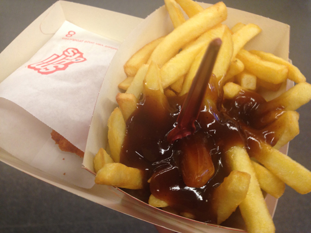 Vrijdagavond een snelle hap op het station! Tot mijn grote spijt ben ik Julia’s een beetje zat, dat heb ik gewoon echt te vaakégegeten, en een ander gezond alternatief is er eigenlijk niet. Dus ging ik maar voor Smullers: de beste friet en de lekkerste curry. Mmmm!