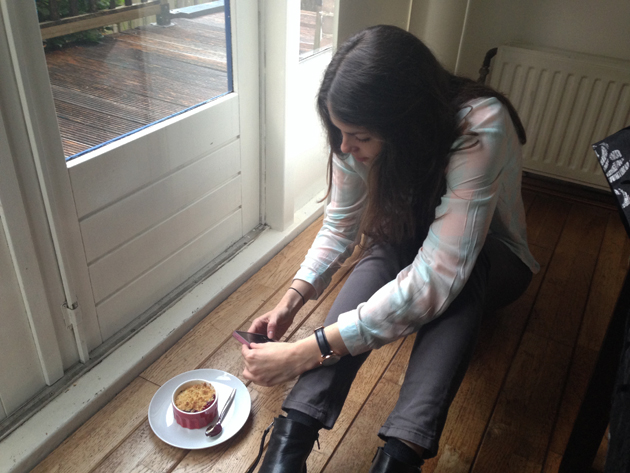 Lang leve eten met bloggers. Jolien zocht goed licht voor haar Instagram-foto en vond dat bij het raam. Op de grond. ;)