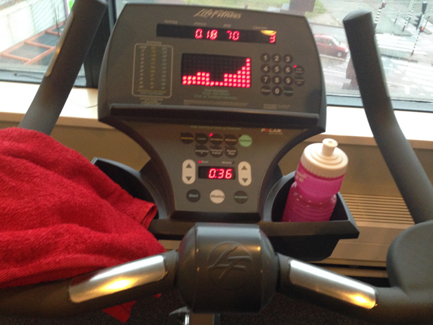 Na de 15 en 10 km van vorige week had ik helaas last van m’n kuit gekregen. Zo gek, dat heb ik nog nooit eerder gehad. Hardlopen werd ‘m dus maar even niet! Fietsen, crosstrainen en bikkelen opéde apparaten in de sportschool kon wel. Lekkah!