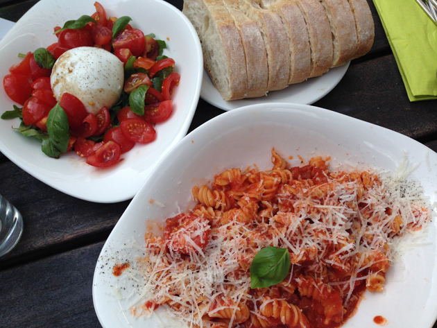 Ik nam pasta met tomatensaus en een jummie salade caprese erbij. Mmmmm!