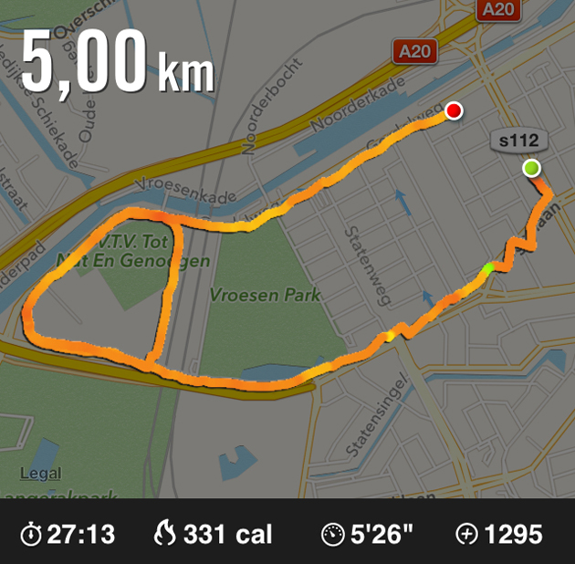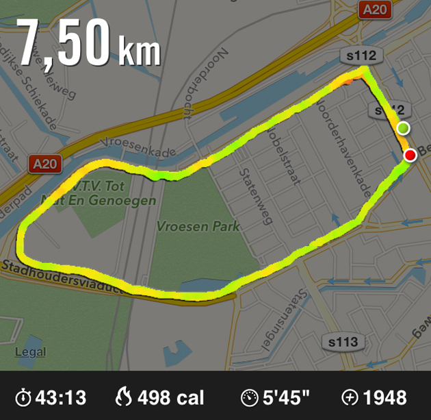 Doordat ik niet hoefde te koken, had ik tijd genoeg om nog even een laatste pre-WOTN rondje te gaan rennen. Ik hield het bij 7,5 km voor gezien. Je moet zo kort van tevoren niet meer tot het uiterste gaan natuurlijk.