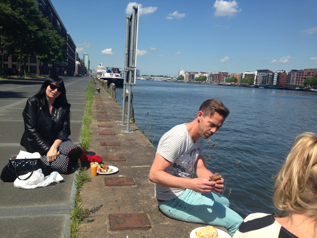 Het was zo mooi weer, dat we met de collega’s lekker buiten aan het water gingen lunchen.