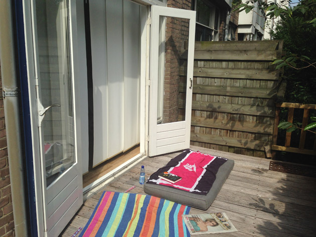 Zaterdagochtend was het mooier weer dan voorspeld. Fijn! Even lekker een boekje lezen in de zon op de veranda.