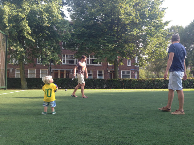 ’s Avonds na het eten gingen we op een veldje in de buurt even voetballen met Faas. Naja, Johan en Daan dan, Pien en ik keken toe. ;) Johan filmde Faas met de GoPro met dit als resultaat!