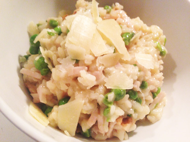 Ik had bedacht die avondérisotto met gerookte kip en erwtjes te maken, maar ik had enorme vertraging met de trein. Ik kwam laat en heul hongerig thuis, dan is risotto niet het meest ideale maaltje. Duurt lang! Maar goed, wel lekker. ;)