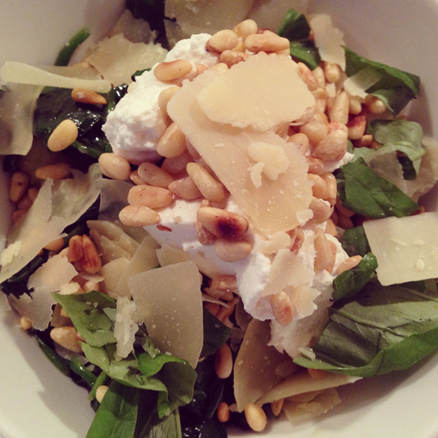 En ik kocht ingrediénten voor een fijn avondmaal voor mezelf, want Johan was de hele dag in Enschede voor FC Twente – Feyenoord. Ik maakte jummie gnocchi met pesto, spinazie, ricotta, Parmezaanse kaas, pijnboompitjes en basilicum.