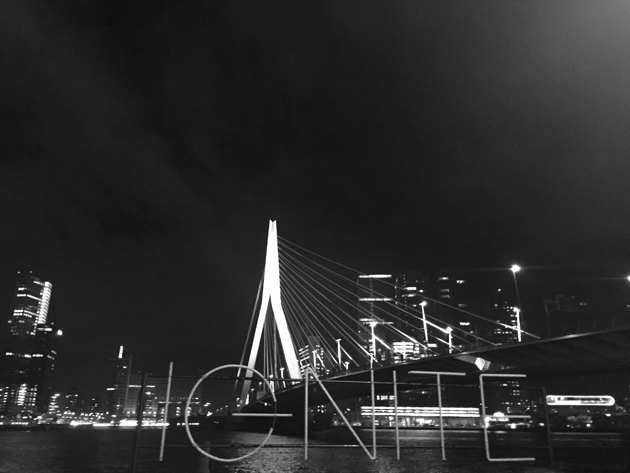 Eindpunt: restaurant Prachtig aan de voet van de Erasmusbrug. Een te gekke plek, ik heb daar ’s zomers al een aantal keer op het heerlijke terras gegeten. Check dit uitzicht!