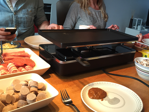 Daarna lekker gourmetten, mmmmm! Frikandellen in kleine stukjes bleken een enorm succes op de bakplaat.