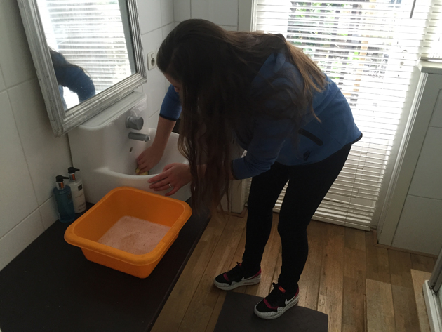 Ook zaterdag stonden we vroeg op: nog even met een laatste sopje door het huis…
