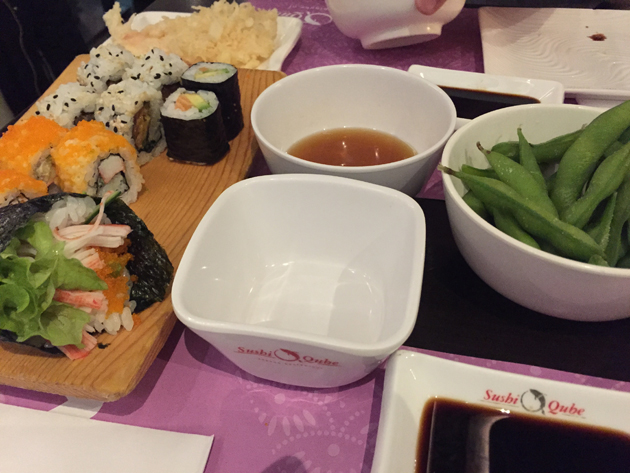 Johan moest ’s avonds werken bij Nederland-Turkije, dus kwam goede vriend Henk-Jan gezellig naar Rotterdam. We gingen sushi eten bij Sushi Qube, want Henk had al even geen sushi meer op en had daar enorm veel zin in. Duséach, ik offerde mezelf maar op. Ik doe mijn vrienden (en vooruit, mezelf ook…) graag een plezier. ;)