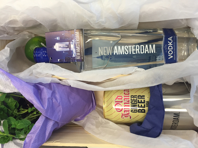 Het was een gave fles wodka van het merk New Amsterdam. Ik kreeg er ook nog een heel cocktailpakket bij. Dankjewel MissPublicity!