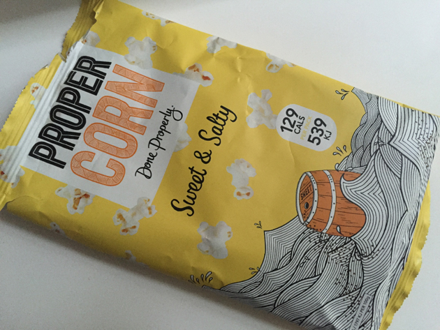 Op de terugweg naar huis had ik zin in een kleine snack. Ik zwichtte voor de popcorn van Propercorn, verkrijgbaar bij AH To Go op Rotterdam CS. Deze Sweet & Salty is mijn favoriete smaak.