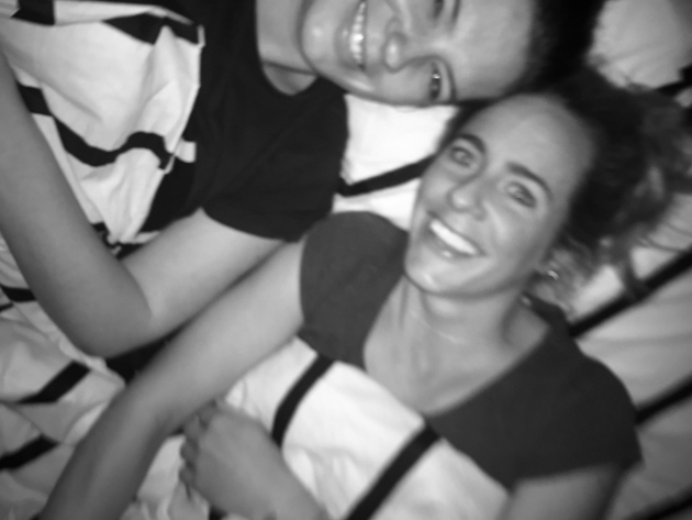 En ze bleef ook gezellig slapen. In de donkere kamer wilden we een selfie maken, maar de flits was nogal fel. Zes pogingen later zag ik vlekken en vond ik het wel gezegend. ;)