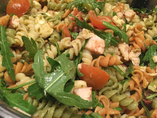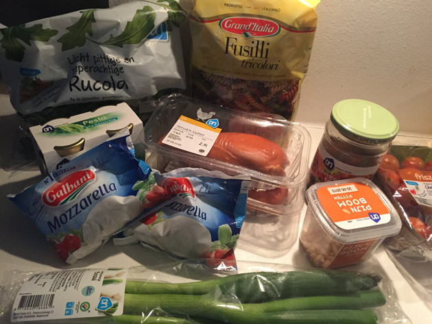 Voor Johan maakte ik een grote pan vol pastasalade. Hij loopt komende zondag de Marathon Rotterdam en wil deze week graag elke dag een bakje meenemen als lunch.