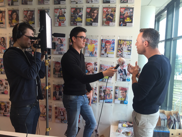 Woensdag kwam presentator Hans Goedkoop bij ons op de redactie voor een interview voor onze Superguide-app. Collega Fons vroeg hem het hemd van z’n lijf, collega Boudewijn legde alles vast.