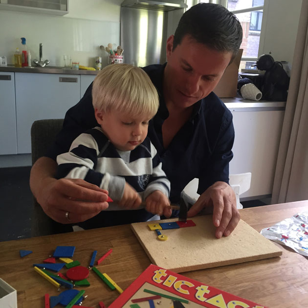 Zaterdagochtend deden we boodschappen en wipten we even langs bij vrienden (en ex-ceremoniemeesters) Pien en Daan. Johan werd gestrikt voor een timmersessie met Faas.