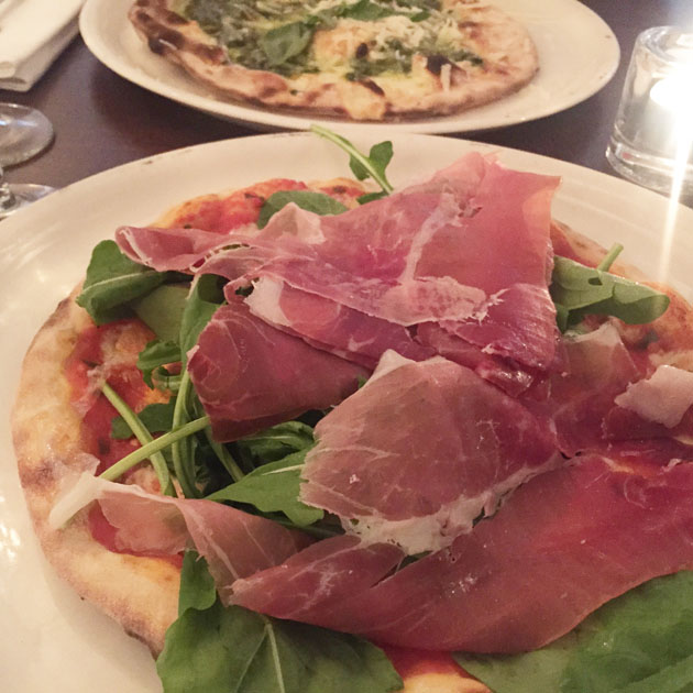 We deelden drie kleine voorgerechtjes en namen ieder nog een kleine pizza. Zoooo lekker eten daar!