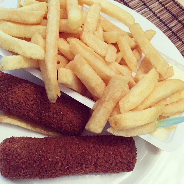 Woensdagavond thuis zijn we moe van de jetlag, de koffers uitpakken en het opruimen. En dus vinden we dat we lekker slecht mogen eten. Het is toch nog een beetje vakantie!