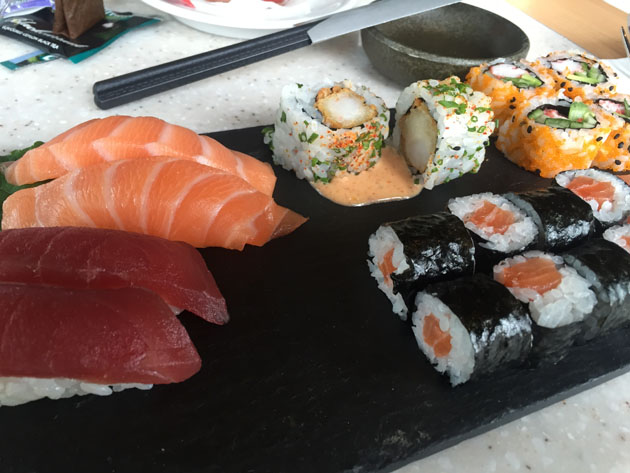 En de sushi smaakt nog overheerlijk ook. Zo kwamen we de overstaptijd wel door!