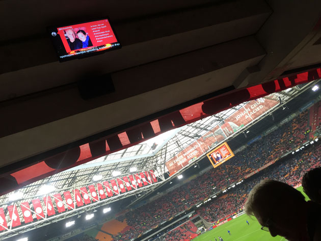 En door de hashtag #wijzijnajax te gebruiken, was onze foto (weer) te zien op de grote schermen in het stadion! Helaas kwam Ajax niet verder dan 2-2, bummer…