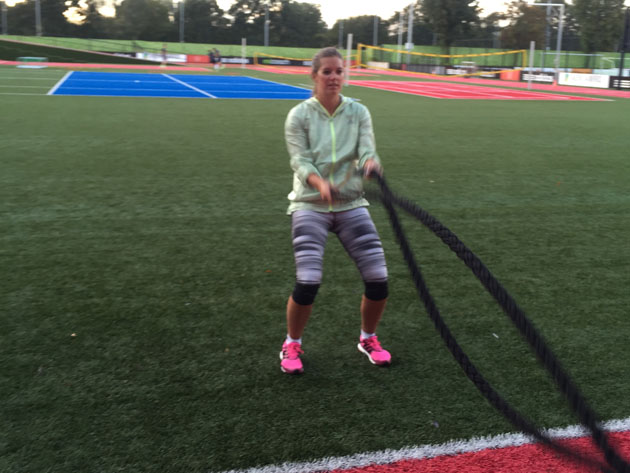 Zwaaien met die zware touwen had ik nog nooit gedaan. Mijn armen verzuurden al na tien seconden, haha… Heftige oefening!