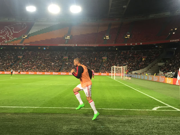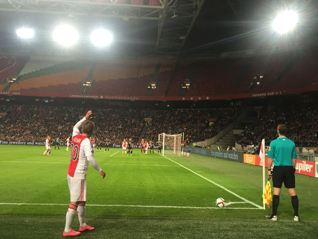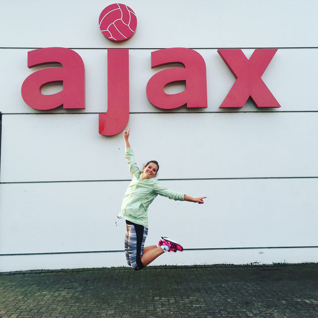 Daarna mochten we met z’n allen naar de bekerwedstijd Ajax-De Graafschap. En we zaten gewoon front row op rij 1 en 2! Zo dicht op het veld heb ik nog nooit gezeten.