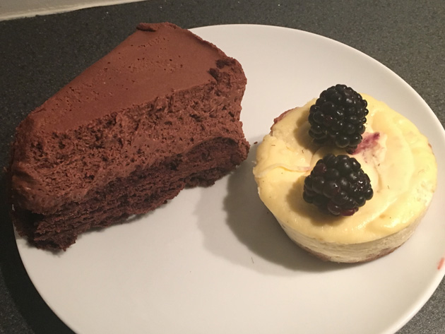Bij Lof der Zoetheid hadden we een punt chocolade-truffeltaart en een cheesecake’je meegenomen. To die for.