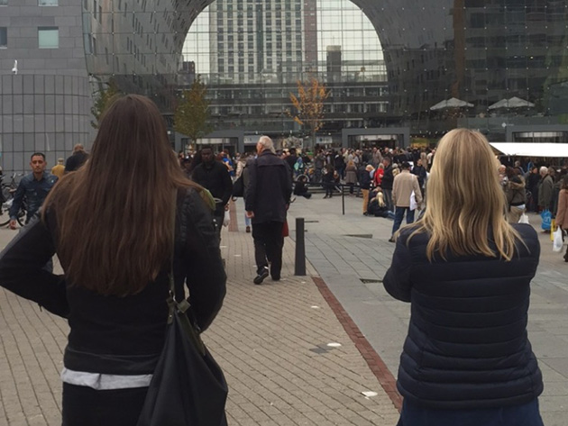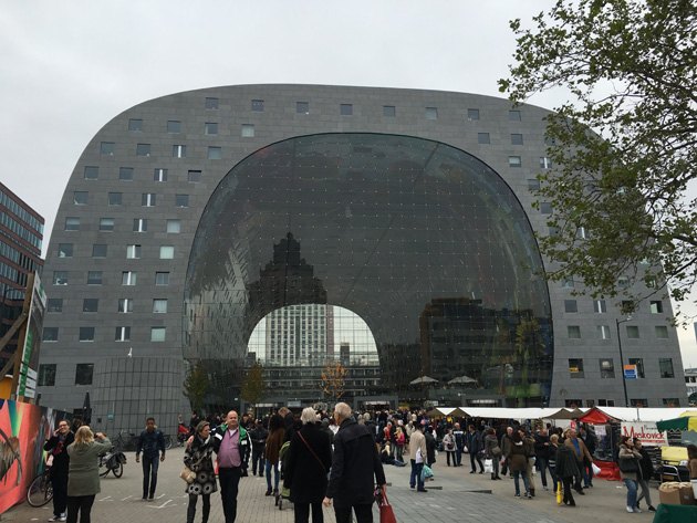 Bas en Carola waren nog nooit in de Markthal geweest, dus liepen we daar even heen. Blijft een imposant gebouw!