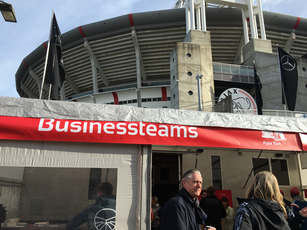 Zondag: tijd voor de Ajax Run! Ik was door Adidas uitgenodigd om mee te doen, dus moest verzamelen bij de Business-teams.