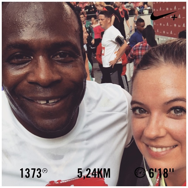 Na de finish zag ik oud-keeper van Ajax en het Nederlands elftal Stanley Menzo! Hij had de 5 km ook gelopen. Ik liet hem niet uitpuffen, maar stapte direct op hem af voor een selfie, haha.