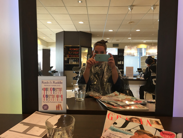 Zaterdagochtend was het zover: ik ging nu echtévoor rood! Whaaa! Samen met de kapper van Cosmo koos ik de juiste kleur uit en hoopte ik maar op het beste.