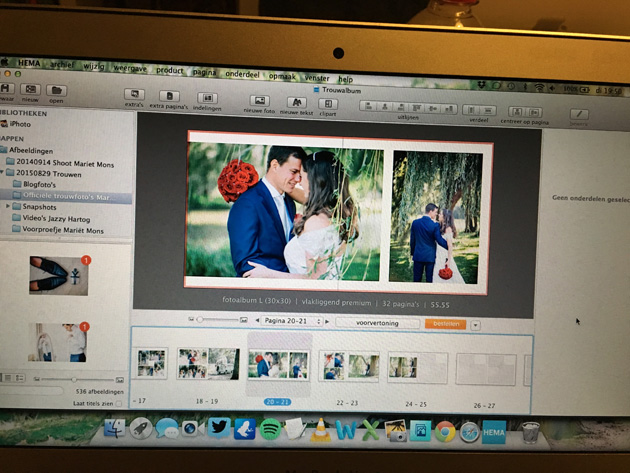 En ik had de smaak te pakken, dus begon ik daarna aan ons trouwboek! Wat een fantastische foto’s heeft Mariét toch gemaakt. Hij is lekker dik geworden; ik heb géén darlings gekilld en alle foto’s erin gedaan die ik wilde.